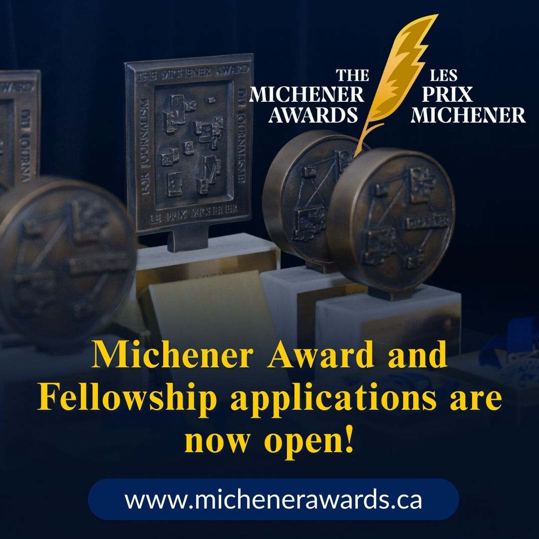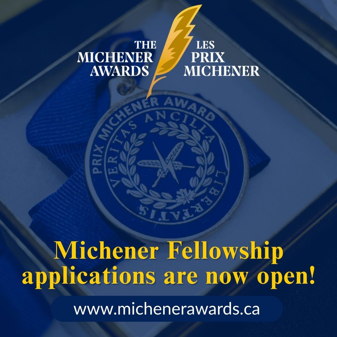 The Michener Fellowships are now open for applications. The Michener Awards Foundation supports ambitious journalists and journalism educators who want to take on projects that serve the public interest or enhance journalism training in Canada.